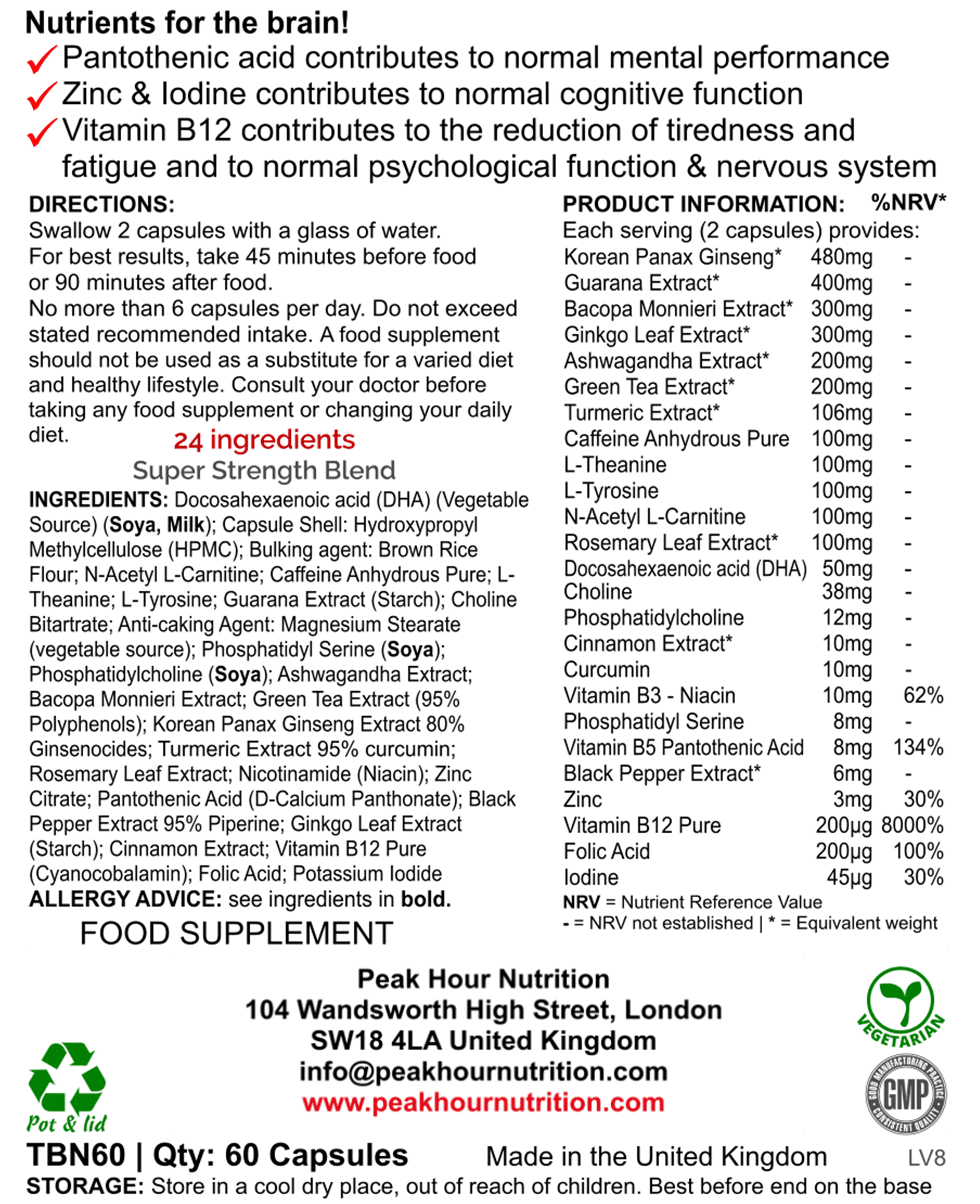 • ​L-TYROSINE – Elevates mental capabilities & negates ‘crashing’ effect of caffeine *